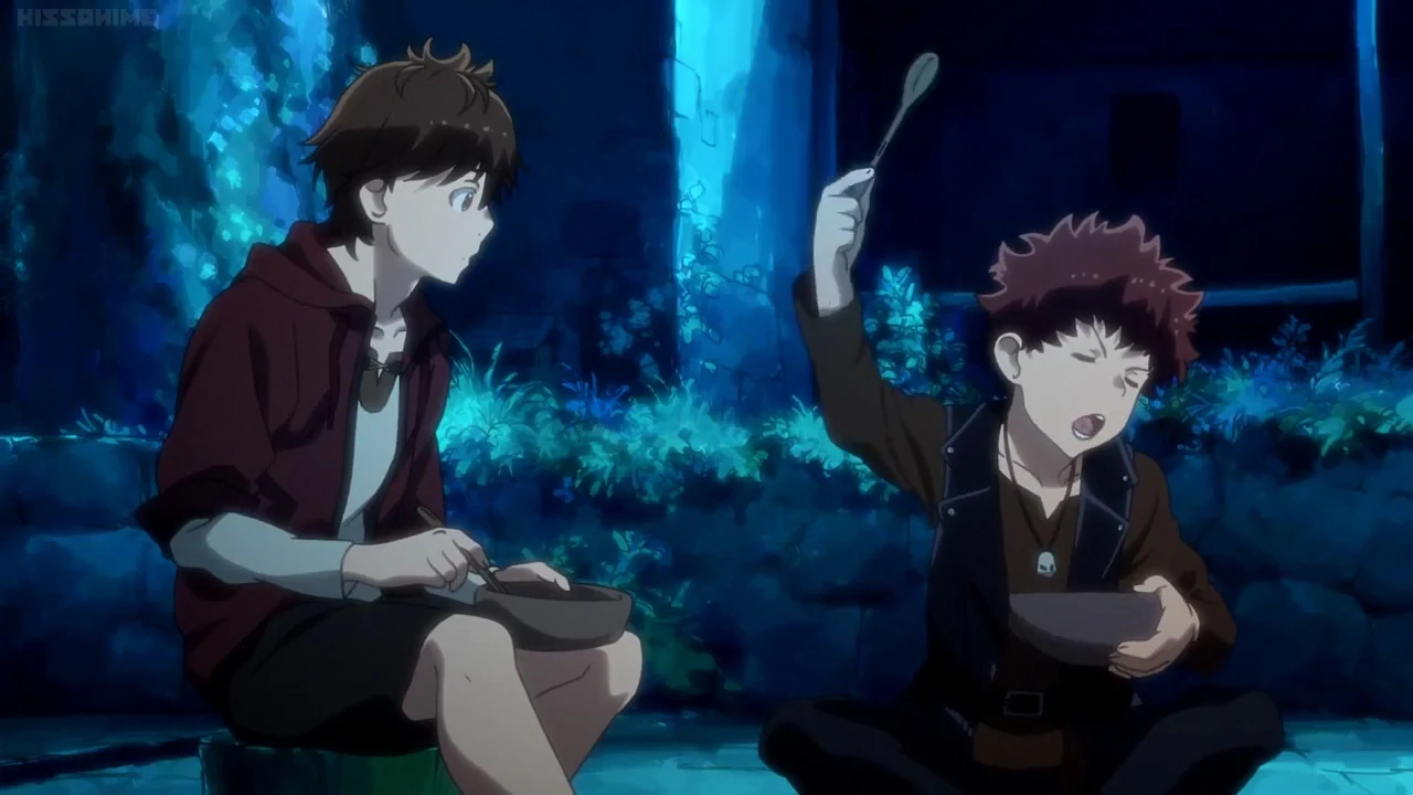 He gets severely wounded and fades in and out of consciousness imagining Manato, Moguzo, and Choco, as they carry him back to Grimgar.